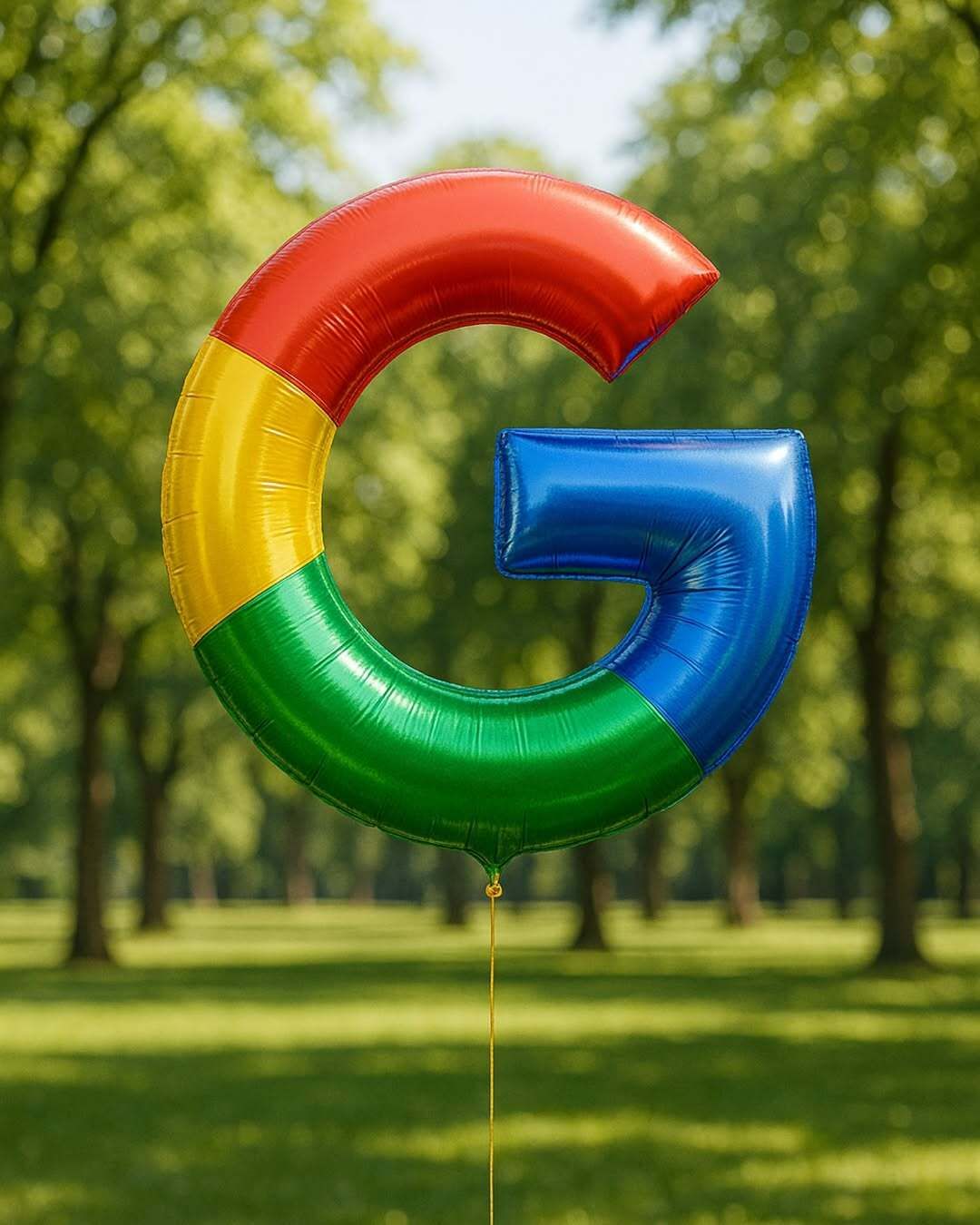 Prompt “A hyper-realistic metallic balloon in the shape of the [uploaded logo]. The balloon should have a glossy, reflective surface and vibrant colors matching the logo design. It is floating ourdoors in a bright park with blurred green trees in the background. The balloon is tied with a thin golden string and softly lit by natural sunlight. The scene should look photorealistic and cheerful.”